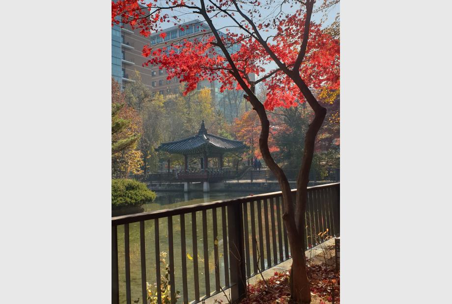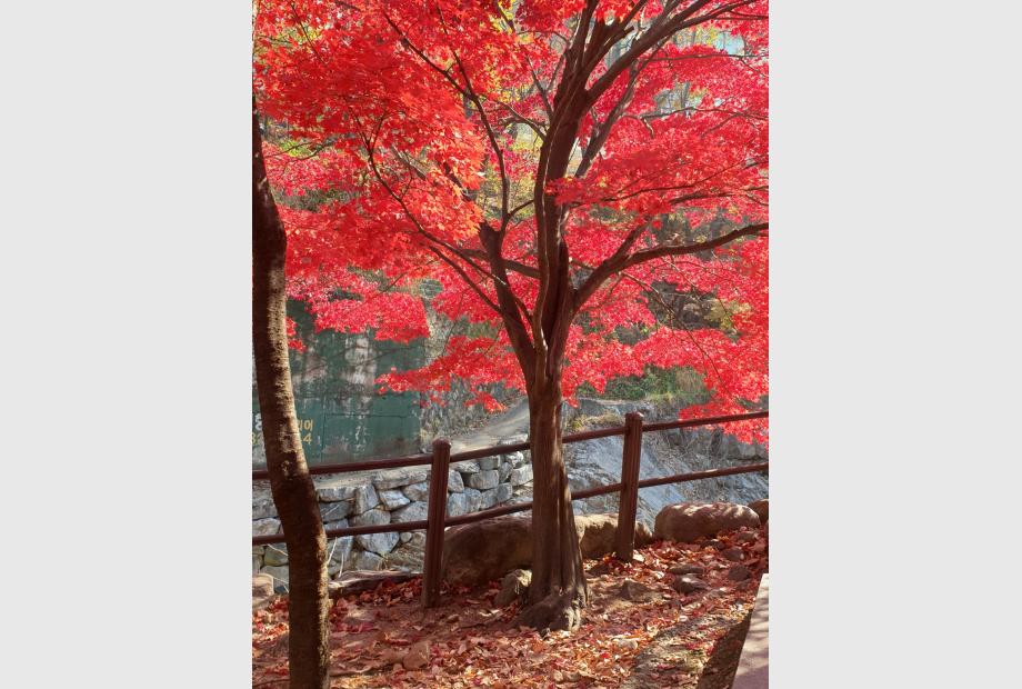 Während meinem Auslandsjahr in Korea habe ich (trotz Covid19-bedingter eher ungünstiger Umstände) eine Unzahl an einprägsamen Erfahrungen gemacht. Doch wenn ich nun zurückblicke, merke ich nur umso deutlicher, was für einen besonderen Platz die koreanischen Jahreszeiten in meinem Herz gewonnen haben. Bei der Erwähnung koreanischer Jahreszeiten würden die meisten wohl sofort an den Frühling denken, zu dem die Kirschblüten die Bäume schmücken und eine weiße und rosane Decke über den Boden ausbreiten. Doch die Jahreszeit, die in mir den größten Eindruck hinterlassen hat, ist der Herbst. Als ich vor lauter Universitätsstress in meinem winzigen Oneroom-Zimmer kaum noch atmen konnte und nur noch hinaus ins Freie wollte, erlaubte ich mir eines Tages, eine kleine Pause einzulegen. Ich schnappte mir meine Tasche, zog hastig meine Schuhe an, und machte mich auf den Weg. Einfach nur raus. Ich hatte bereits zu Beginn meines Aufenthalts an der Seoul National University den naheliegenden Kwanaksan-Berg besucht. Neben den vielzähligen Wanderwegen, die auf den Berg führen, befinden sich zu Fuße des Berges außerdem ein kleiner Park mit Teich, in dem eine kleine Entenfamilie lebt. Auch ein Pagoda steht zu Seiten des Teiches und berreichert die bunte Spiegelung im Wasser mit seinem Antlitz. Ich entschied mich an jenem Tag, die Strecke bis zu dem Teich zu Fuß zu gehen und wanderte somit von meiner Haustür bis zu dem Berg im Freien. Endlich konnte ich ein wenig frische Luft schnappen. Schon als ich den Eingang zu den Wanderwegen am Fuße des Berges erreicht hatte ragten hier und da die herbstlichen Bäume hinter den grauen Hochhäusern hervor. Doch erst als ich den Wanderweg betrat und mich auf den Weg zu dem Teich begab, bot sich mir die wahre Schönheit der Natur. In allen Abstufungen von grün, gelb, orange, braun und rot erstreckten sich die Bäume in einem farbenfrohen Spiel, welches nur der Herbst zu spielen vermag. Ich spürte, wie sich mit jedem Schritt mein Tempo verlangsamte. Ich genoss jeden Schritt, lauschte dem Rauschen der Bäume, dem Quaken der Enten, dem Rascheln des Laubs, welches dem Takt meiner Schritte folgte. Der Wind blies durch den Wald und mit ihm tänzelten die bunten Blätter um mich herum. Endlich atmete ich freier, und meine Schultern lockerten sich mit jedem Atemzug. Ich konnte lediglich spüren, wie sich die Last von mir abschüttelte. Doch dann stockte mir für einen Moment erneut der Atem. Doch diesmal war es nicht aufgrund der Anspannung, die sich in den vorherigen Wochen in meine Brust gefressen und meine Tage verdunkelt hatte. Nein. Vor mir stand der schönste Baum, den ich je in meinem Leben gesehen hatte. Und das obwohl ich als Landkind von jung auf schon immer von Bäumen umgeben war. Dieser Baum stand am Rand des Flussufers, mit rotem Blattkleid. Hinter ihm die Sonne, deren Sonnenstrahlen die Blätter in so bildhaft perfekter Weise durchdrungen, dass diese von selbst aus zu leuchten schienen. Die wenigen Wanderer, die zu jener perfekten Stunde ebenfalls an diesem Baum vorbeiliefen fanden sich in ebenbürtigem Staunen. Inzwischen all dieser wunderschönen herbstbunten Bäume stand der eine Baum, der es trotzdem schaffte, herauszustechen. Als wäre er direkt aus einem Märchen gewachsen, stand er einfach nur da und leuchtete. Dieses Bild werde ich niemals vergessen. Das Bild des leuchtenden Baumes, der mich an jenem Tag tröstete. Der Baum, der in jenem Moment so perfekt von den Sonnenstrahlen umtänzelt war - als würde er nur darauf warten, so von mir gesehen zu werden. Der Märchenbaum. Dieses Bild werde ich auch in Zukunft immer in meinem Herzen tragen, und obwohl keine Kamera der Welt dessen wahren magischen Anblick festhalten könnte, hoffe ich dennoch, dass dieser Baum auch Ihnen ein wenig Ihrer Last nehmen kann. So wie er es damals für mich getan hat.