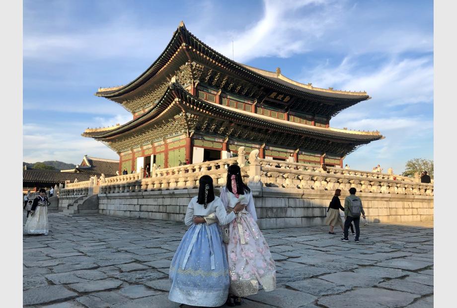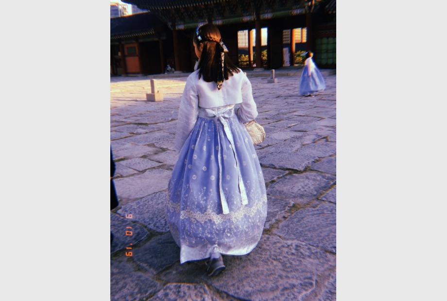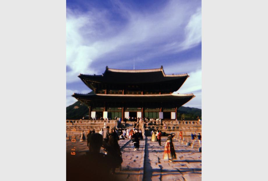 Ich bin im Herbst 2019 mit meiner Mutter und Schwester für drei Wochen nach Südkorea geflogen. Wir haben verschiedene Tempel und andere Sehenswürdigkeiten, wie den "N Seoul Tower" besucht. Für mich stach besonders der "Gyeongbokgung Palast" heraus. Dadurch, dass der Eintritt frei war, wenn man ein traditionell koreanisches Kleid getragen hat, sind viele mit diesen besonderen Kleidern dort gewesen. So auch meine Schwester und ich. Es gab viele verschiedene Verleihe in der Gegend und wir hatten uns zwei sehr schöne Kleider in blau und zartem rosa.