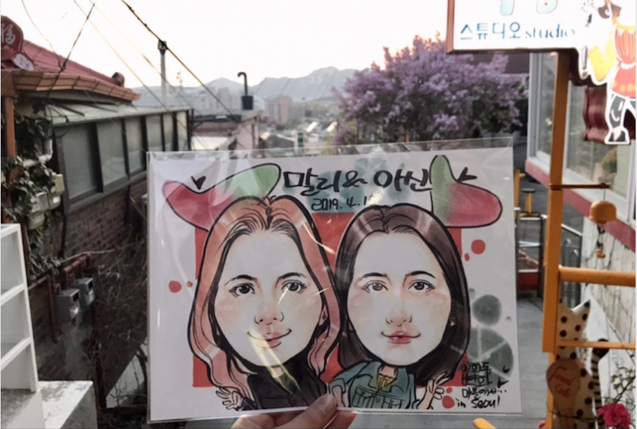 Im Frühling 2019 habe ich meine allererste Reise nach Südkorea angetreten. Es war ein zweiwöchiger Trip mit unglaublich vielen schönen Eindrücken und Momenten. Am liebsten erinnere ich mich an das Ihwa Mural Village zurück, welches sich auf dem Naksan Berg in Seoul befindet. Einmal dort angekommen, sieht man eine ganz andere Seite von Seoul abseits des ganzen Trubels. Während man durch die engen Gassen des Ihwa Mural Village hindurchläuft, wird man von einer ruhigen und künstlerischen Atmosphäre umgeben. Die Wände sind mit wunderschönen Malereien verziert und es gibt kleine Restaurants, die leckere Ramen anbieten sowie Cafés mit unglaublichem Ausblick auf Seoul. Ein wirklich aufregendes und empfehlenswertes Erlebnis war es sich von einem Karikaturisten im Ihwa Mural Village zeichnen zu lassen. Dadurch konnte ich ein kleines Unternehmen unterstützen und ein einzigartiges Souvenir mit nach Deutschland nehmen. Das Bild hängt bis heute bei mir Zuhause und erinnert mich jedes Mal aufs Neue an die unvergessliche Zeit in Südkorea.