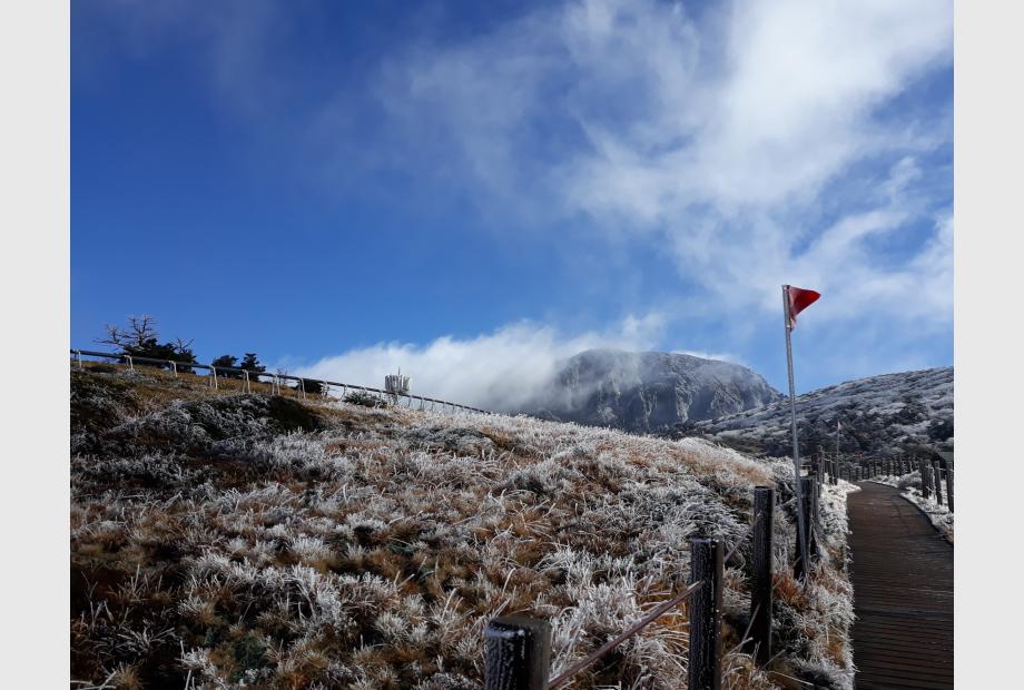 Die Aussicht ist atemberaubend, der überaus beeindruckende Hallasan thront noch immer in einiger Entfernung majestätisch und zeigt sich von seiner vielleicht schönsten Seite.