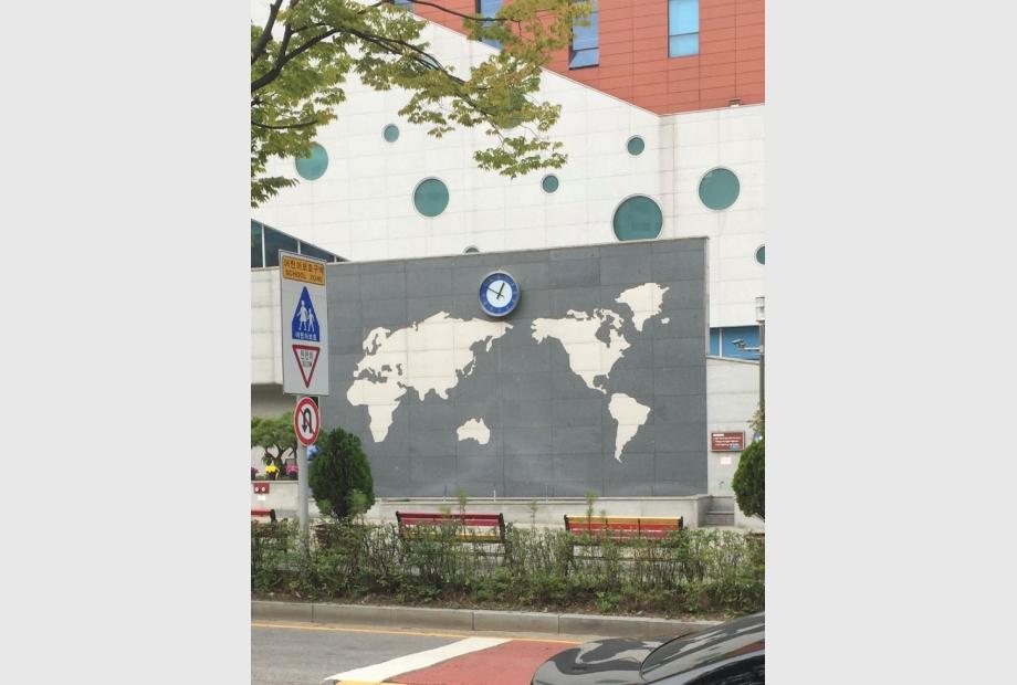 Später haben wir die Kleider zurückgebracht und haben uns auf den Weg nach Hause gemacht. Wir mussten ein Stückchen laufen, um von der U-Bahn zurück zu kommen und sind an einer Schule vorbeigekommen. Was mich sehr erstaunt hat, war, dass die Weltkarte anders war, als wir sie in Deutschland bzw. in Europa und Afrika sehen. Wir sehen Amerika links, Europa und Afrika zentral und Asien und Australien rechts. Die Weltkarte vor der Schule zeigte Amerika rechts, Asien eher zentraler und Europa und Afrika links.